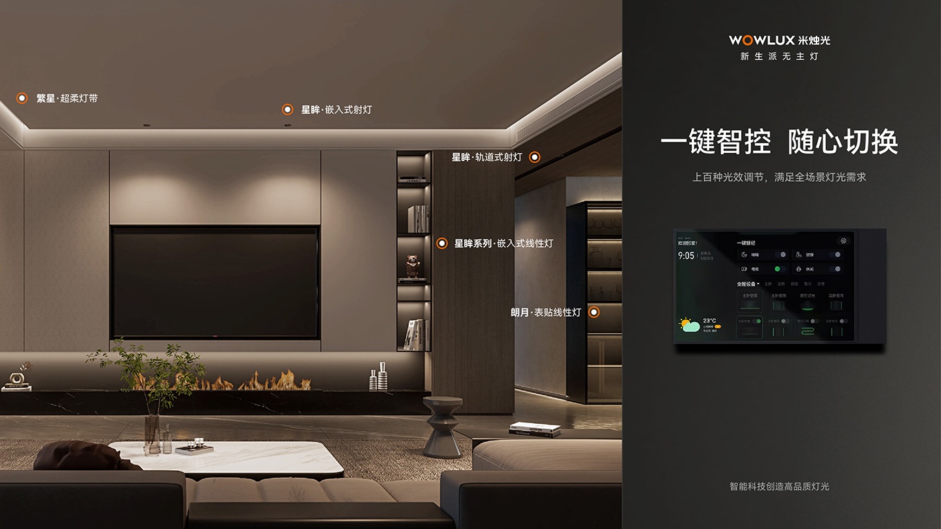 越宏集團全力打造的 WOWLUX 米燭光,是智能照明的全宅智能無主燈品牌。堅持 “讓光有情,讓光懂你”,為家庭帶來理想光環(huán)境。在廣州定制家居展,米燭光將展示其創(chuàng)新智能燈光產(chǎn)品與解決方案。智能無主燈的遠程智控、語音交互功能強大,人體調(diào)光技術(shù)有效緩解眼部疲勞、保護視力。聯(lián)合創(chuàng)智品牌設(shè)計公司助力米燭光塑造全新品牌形象。