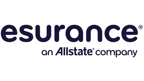 字標(biāo)是公司的名稱——“Esurance Online Auto Insurance”?!癊surance”是小寫字母,包括第一個(gè)字母“e”是藍(lán)色的,而所有其他字母都是綠色的。下面寫著“在線汽車保險(xiǎn)”。它是藍(lán)色的,字體較小。